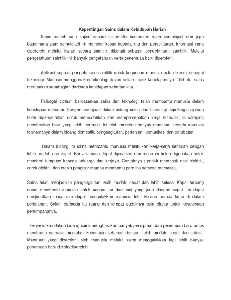 Kepentingan Sains Dalam Kehidupan Harian Pdf